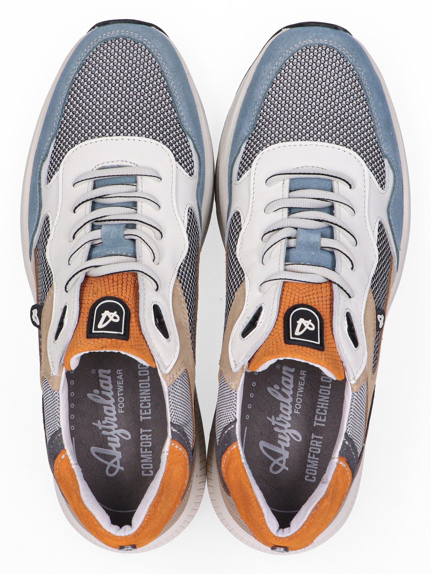 AUSTRALIAN HEREN SNEAKERS BLAUW 15.1717.01-SLG CADIZ WIDTH H BLUE LEATHER BLEU-BEIGE-ORANGE